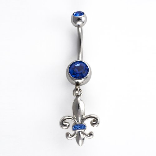 Here are some of the great features of 14G Surgical Steel Double Jeweled Sapphire Blue Fleur-de-Lis Dangle Belly Ring-in Hinged Gift Box