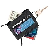 All in one compact size fits small pockets. Dual zip pockets with disappearing key ring. Ripstop water resistant nylon. External ID window.
